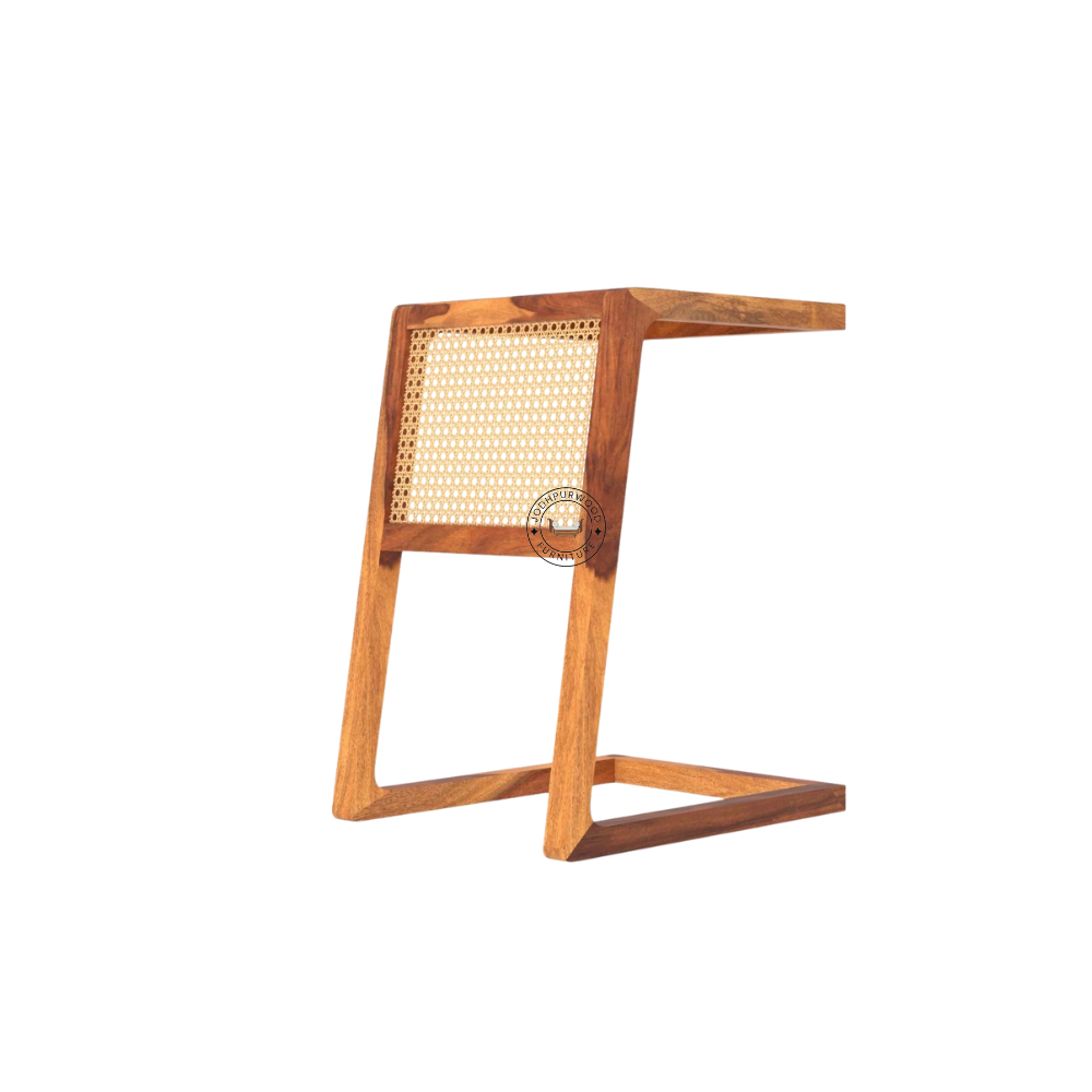 Handmade Sheesham wood C-table with a soft cane finish. A graceful blend of tradition and modern utility.