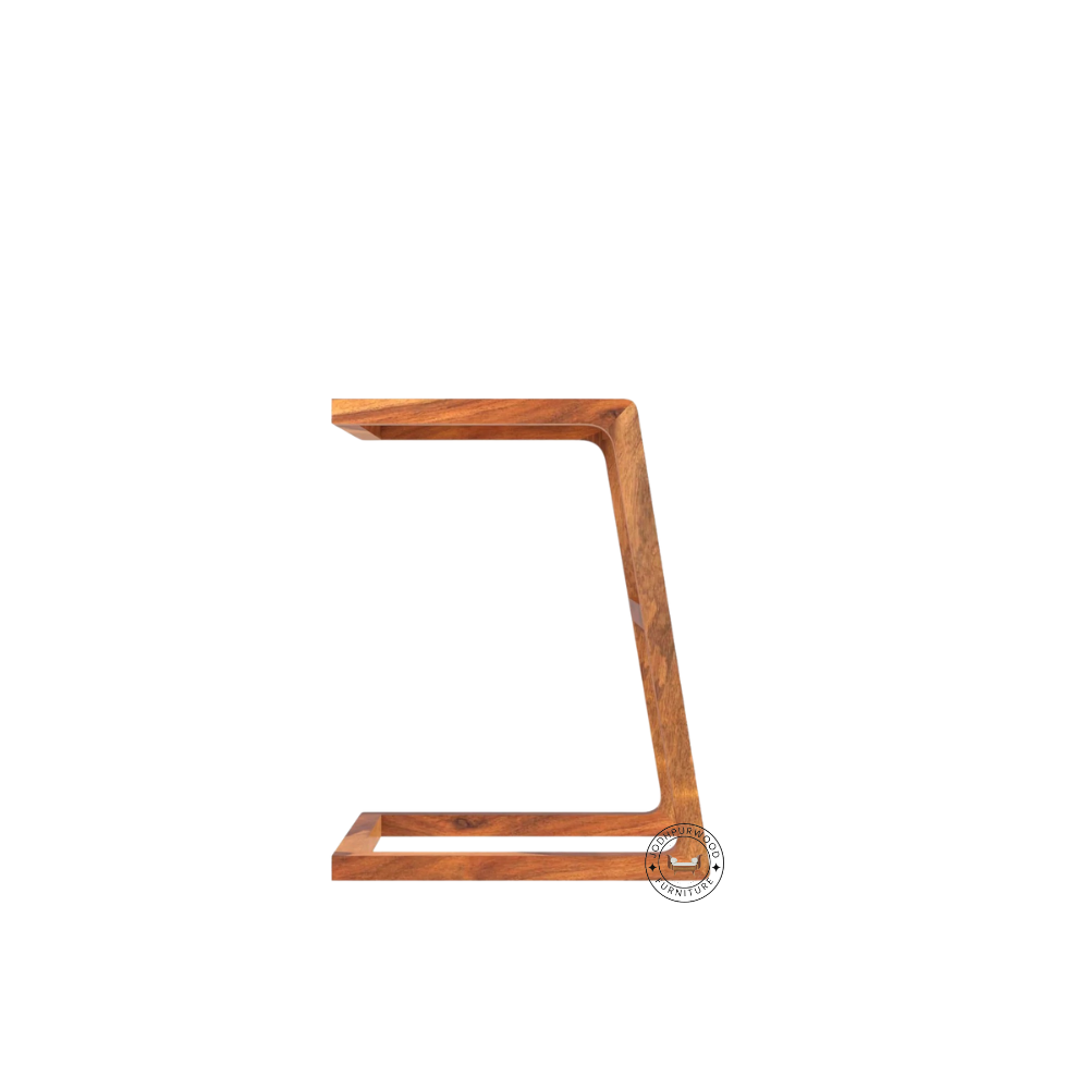 Handmade Sheesham wood C-table with modern design, ideal for living room or bedside use.
