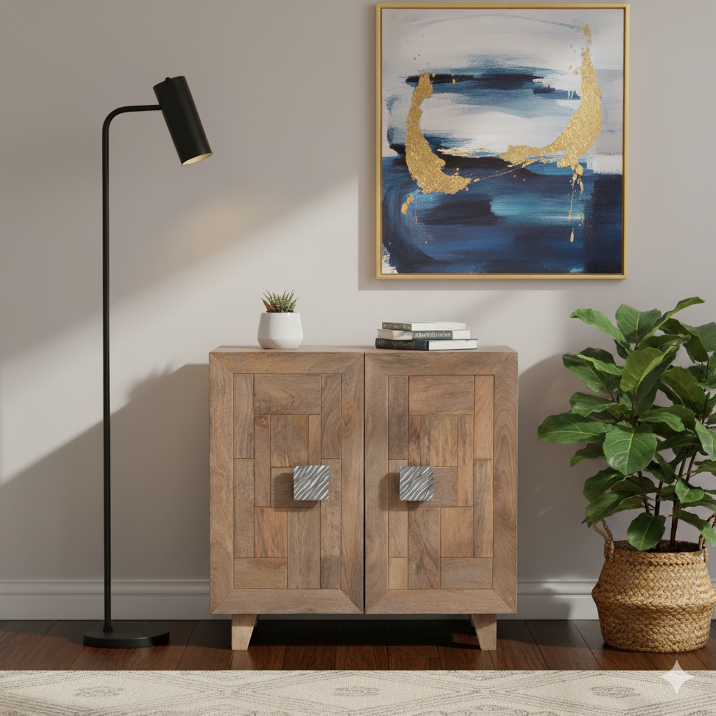Jodhpur Wood Premium Designer Cabinet with 2 Doors – Natural Finish | Stylish Storage Cabinet