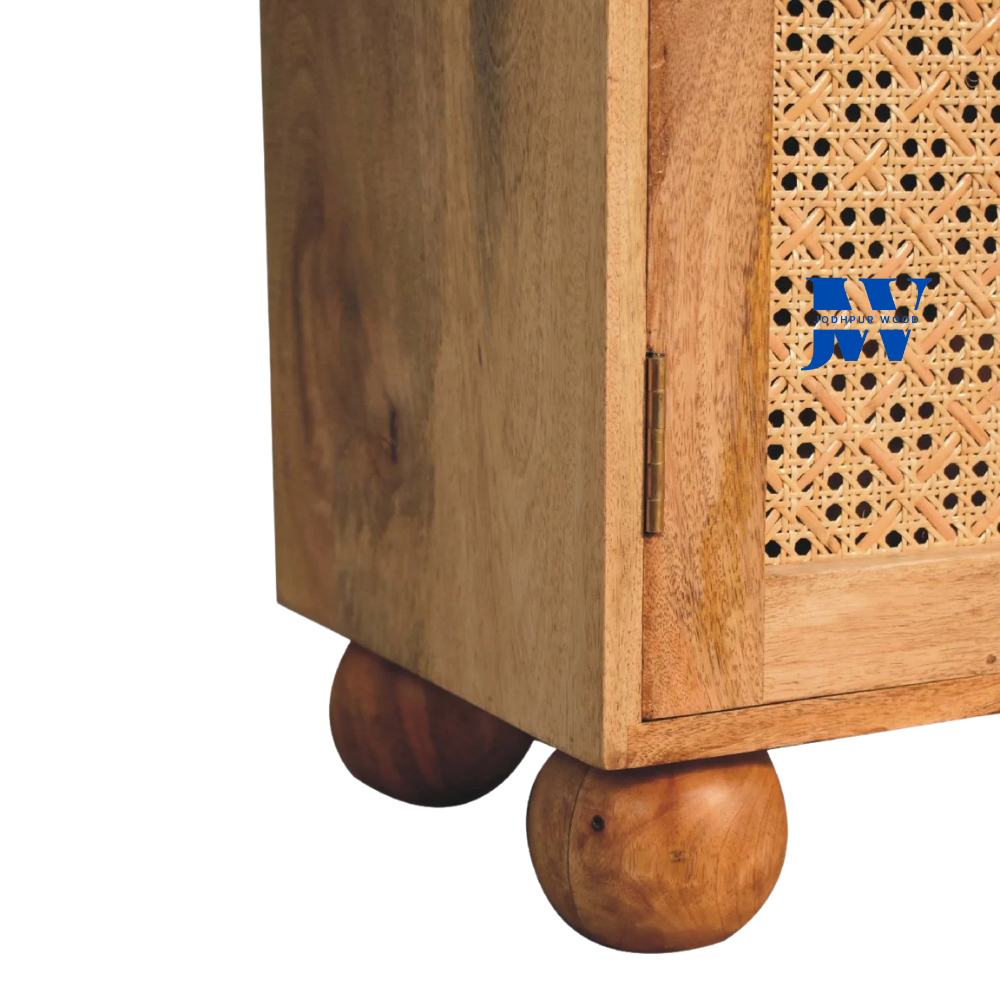 Handcrafted by skilled artisans from Jodhpur, this cabinet showcases natural rattan cane weaving framed by premium solid wood. The clean Nordic lines complement the warmth of cane texture, creating a piece that’s both functional and visually soothing.