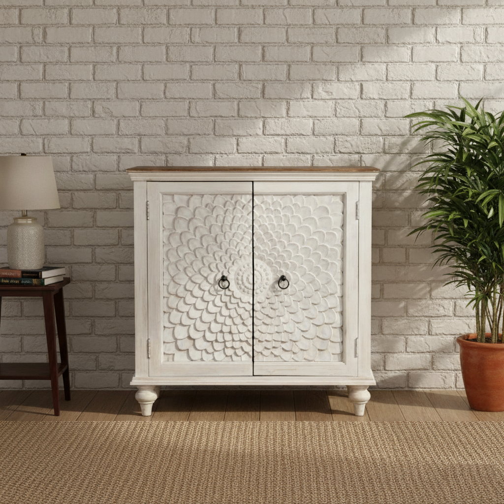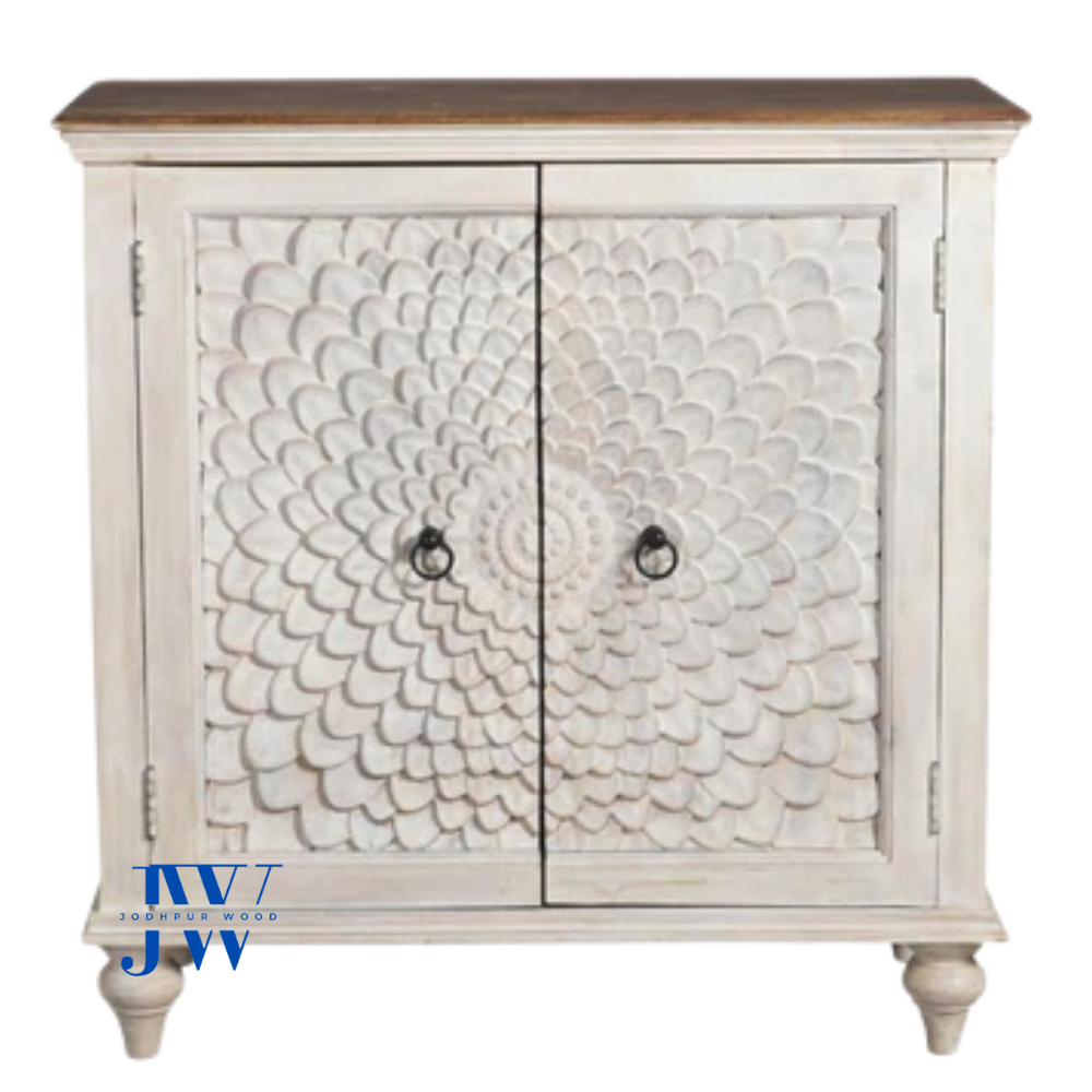 Meera Handcarved Lotus Cabinet (Vintage Finish)