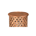 Bring visual interest and artisanal elegance into your living space with the P Raj Wood Hand Carved Side Table – Natural Finish. Expertly handcrafted from 100% solid mango wood, this round accent table features an intricate lattice pattern that adds texture and a subtle boho flair to any room.