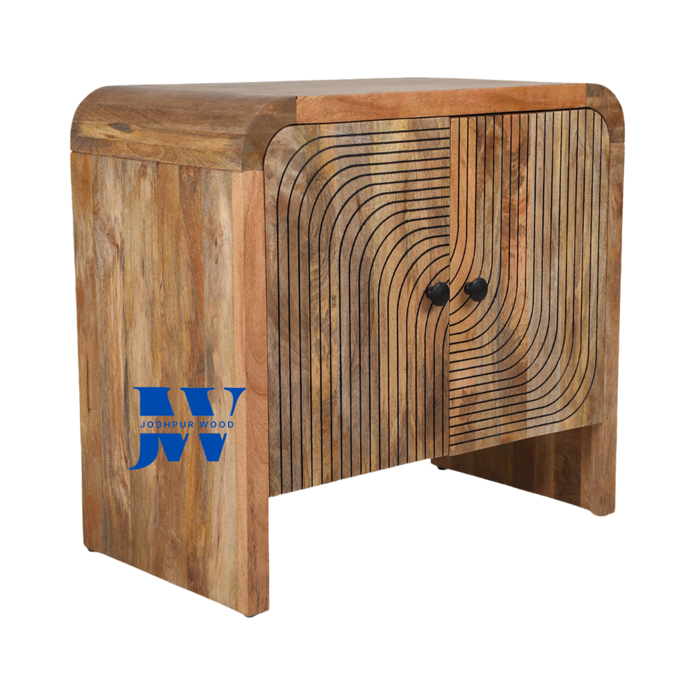 Side view of Padma Carved Wooden 2 Door Cabinet – Solid Wood Handcrafted