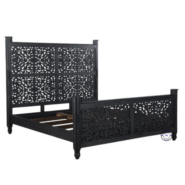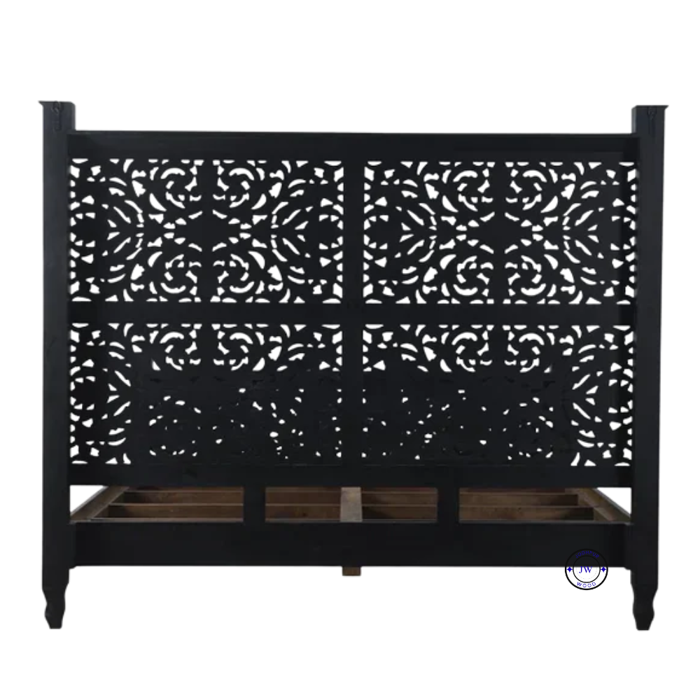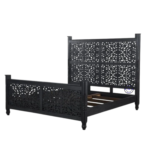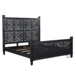 Handcrafted Mango Wood Designer Bed – Front View in Antique Black Finish