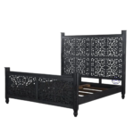 Prem Solid Mango Wood King Size Bed with Hand Carved Panel in Black Finish