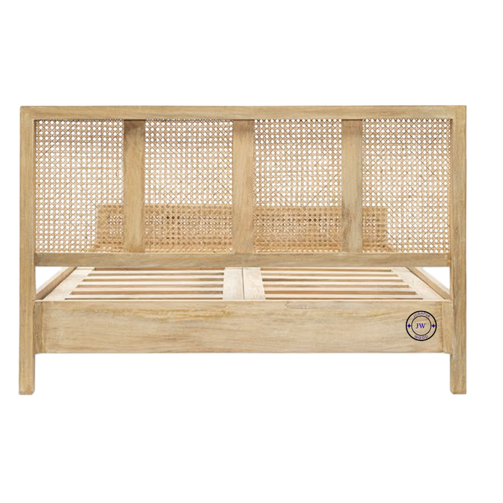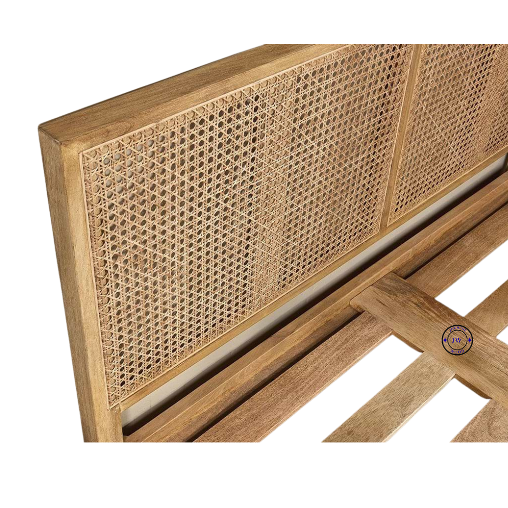 Stacy Cane Mango Wood Bed Frame – Handcrafted Bed with Woven Cane Headboard and Footboard