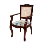 Wooden Royal Cane Arm Chair – Handcrafted Hardwood Dining Chair with Dark Light Finish