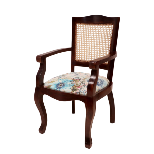 Wooden Royal Cane Arm Chair – Handcrafted Hardwood Dining Chair with Dark Light Finish
